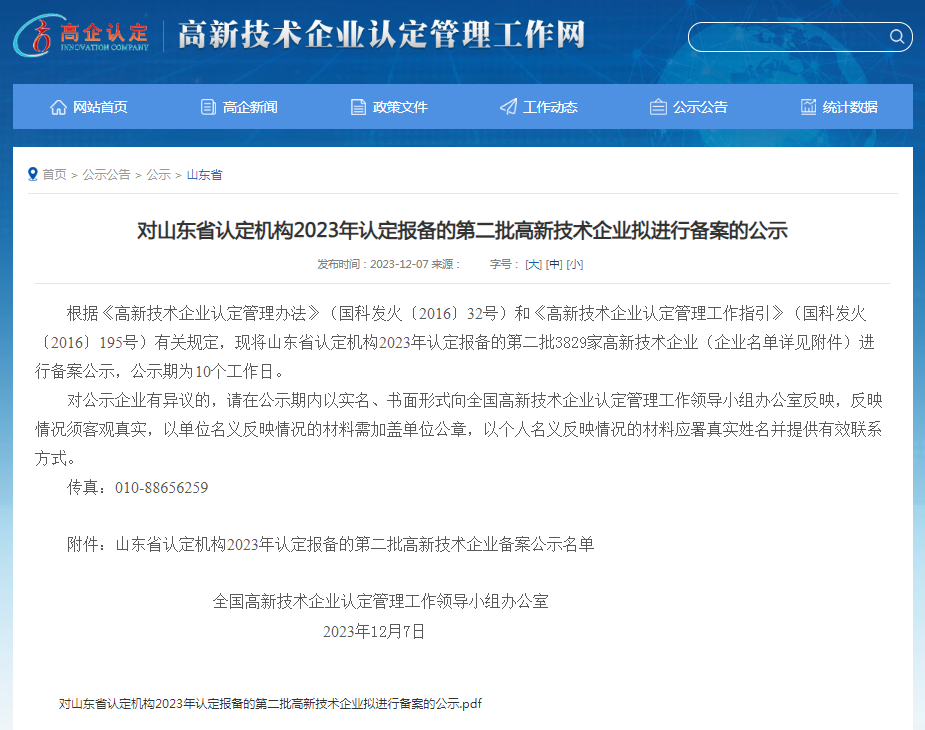 近日,全國(guó)高新技術(shù)企業(yè)認(rèn)定管理工作領(lǐng)導(dǎo)小組辦公室,公布了《對(duì)山東省認(rèn)定機(jī)構(gòu)2023年認(rèn)定報(bào)備的第二批高新技術(shù)企業(yè)擬進(jìn)行備案的公示》。威海德生技術(shù)檢測(cè)有限公司名列其中,順利通過(guò)“國(guó)家高新技術(shù)企業(yè)”復(fù)審認(rèn)定。